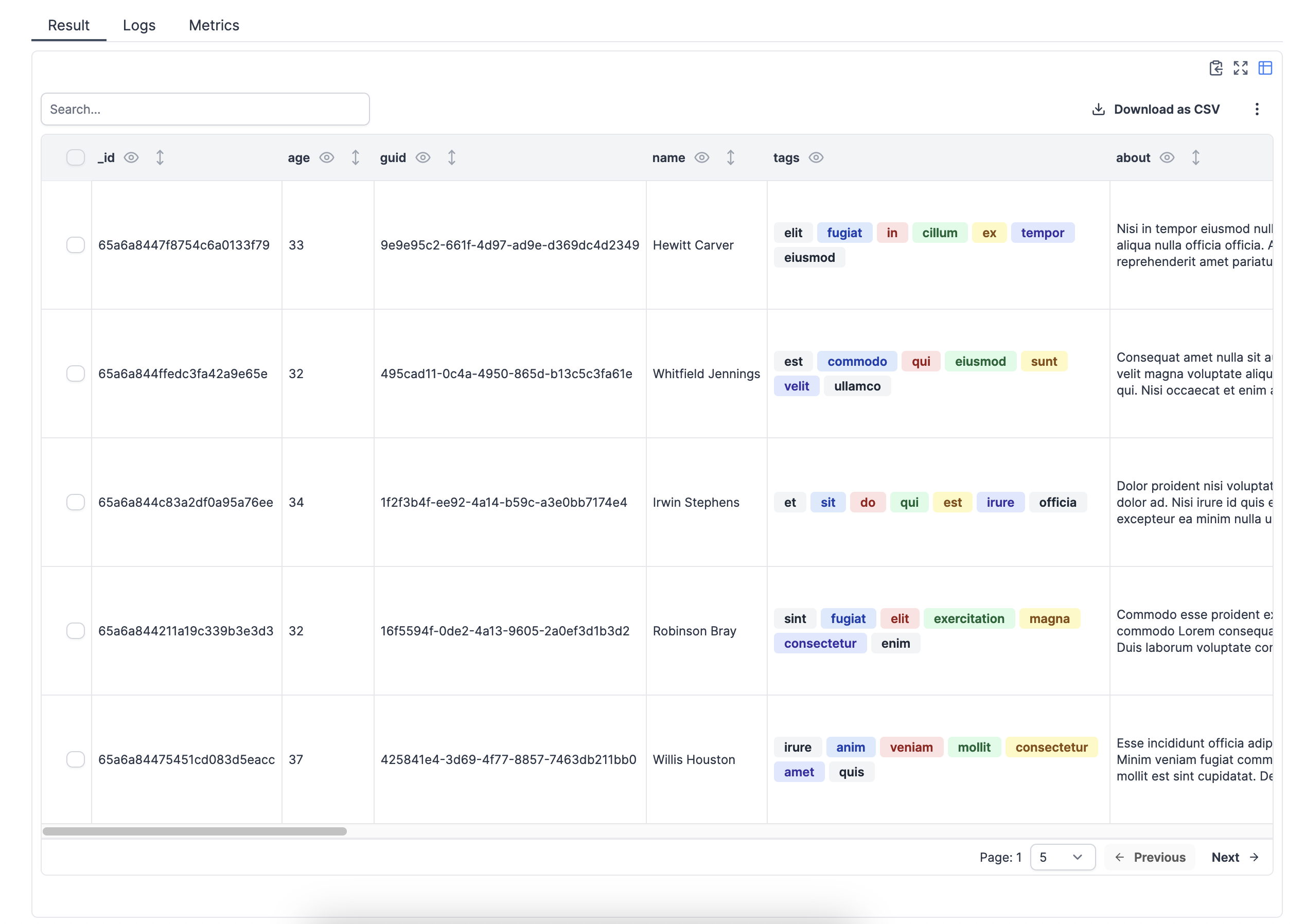 By default, all results are displayed in a JSON format. However, some formats are recognised automatically (Rich Table Display), while others can be forced through your code. By leveraging specific keys, you can display images, files, tables, HTML, JSON, and more.